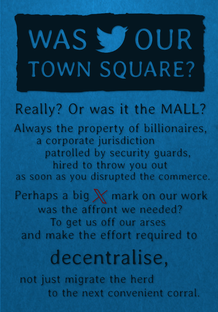 Twitter: Town Square?Rebranding the cattle at the old corral.Decrypt EraJul 25, 2023ShareThis is a libel. You’ll be seeing more of these.libel 23.01 [0] 25 July 2023Same thing on WordPress.